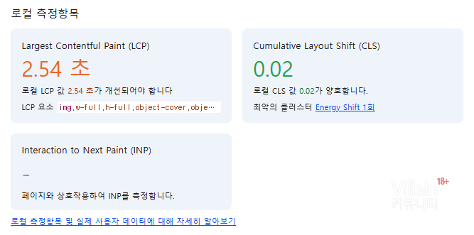 메인페이지 Largest Contentful paint 2.54초