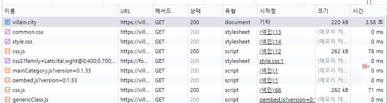 근데 왜 빌런의 페이지와 네이버의 페이지는 용량의 차이가 발생할까?