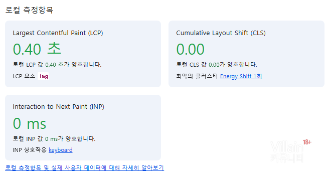 이벤트 페이지 Largest Contenntful paint 0.40초.