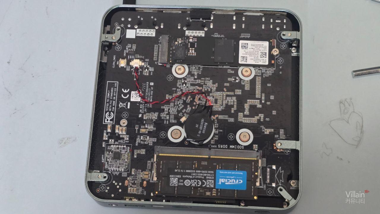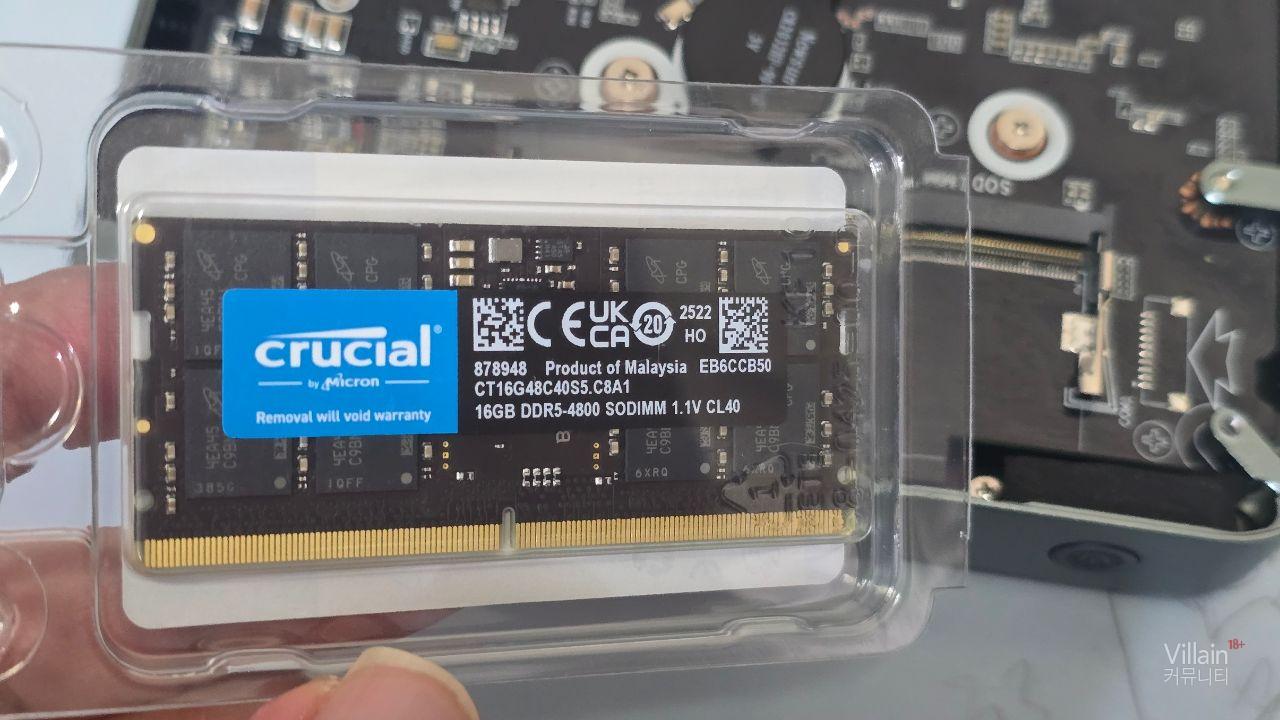 RAM 슬롯의 경우 1개를 지원하며 최대 16GB 지원하기 때문에 노트북용 마이크론 dd5 16GB를 박아줬고 용량은 왠지 게임을 이걸로 하지 않을 것 같아서 삼성 SSD 2280 256GB를 박아줬습니다.