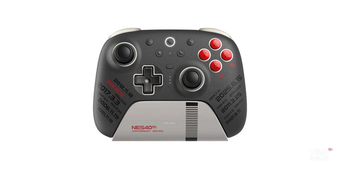 그리고 컨트롤러는 최근에 스위치2에서 자주 사용되는 얼티밋 컨트롤러 2세대가 차징독과 함께 NES모양으로 제작되었는데 8bitdo에서 많이 건들어본 디자인이라 그런지 아주 잘 뽑힌 걸 확인할 수 있습니다.