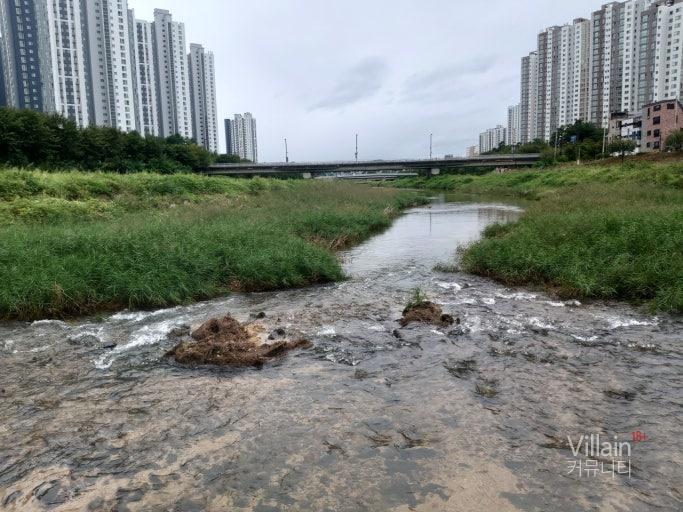 창릉천이라고 하는 동네 하천이 건물 앞 바로 가까이에 있어