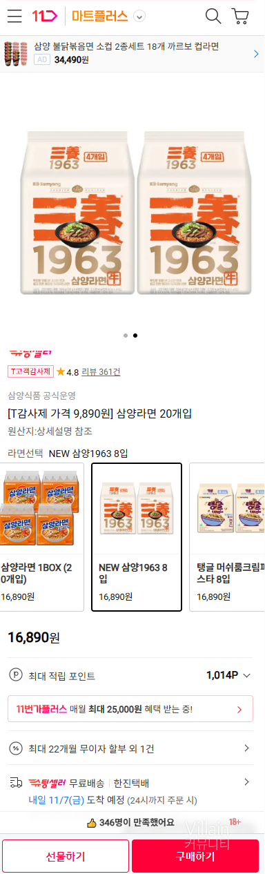 추가로 현재 1번옵션 보면 그냥 삼양라면 20개 짜리도 있는데 가격 같습니다.