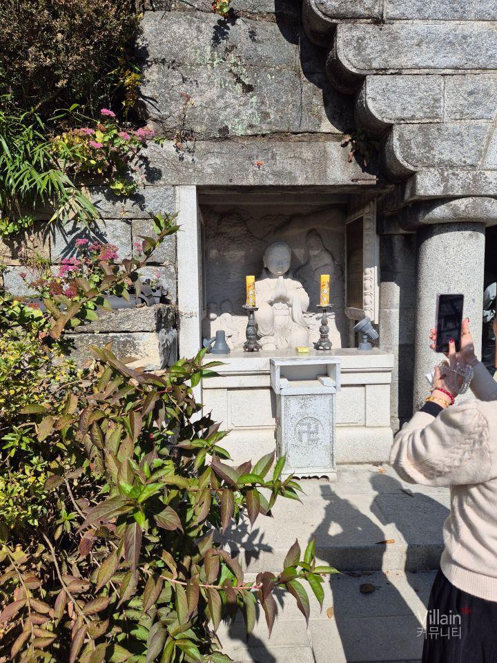 특히 가장 꼭대기 눈썹 바위 아래에 자리 잡은 마애관세음보살은 경이로움 그 자체더라구요.