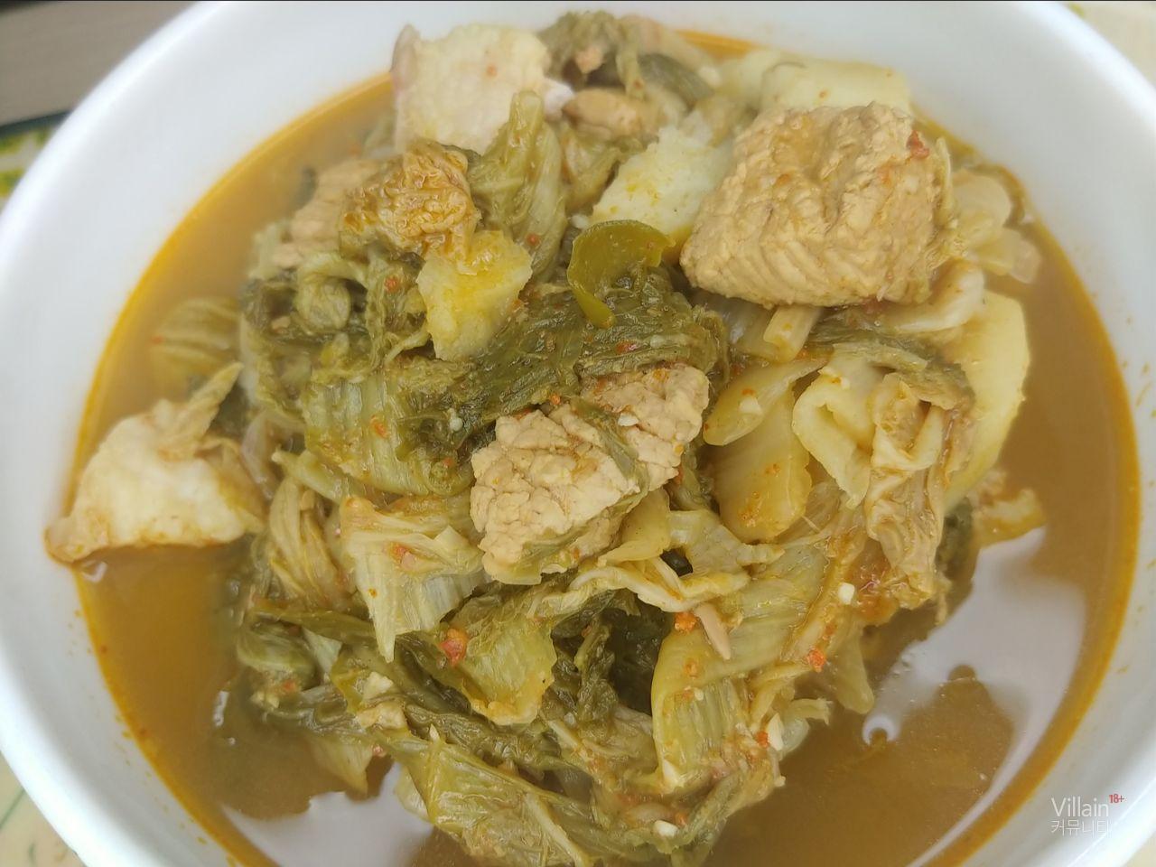 그런데 그런데 뼈다귀는 작은거 하나인가 들어있고 시래기가 산으로 쌓여서