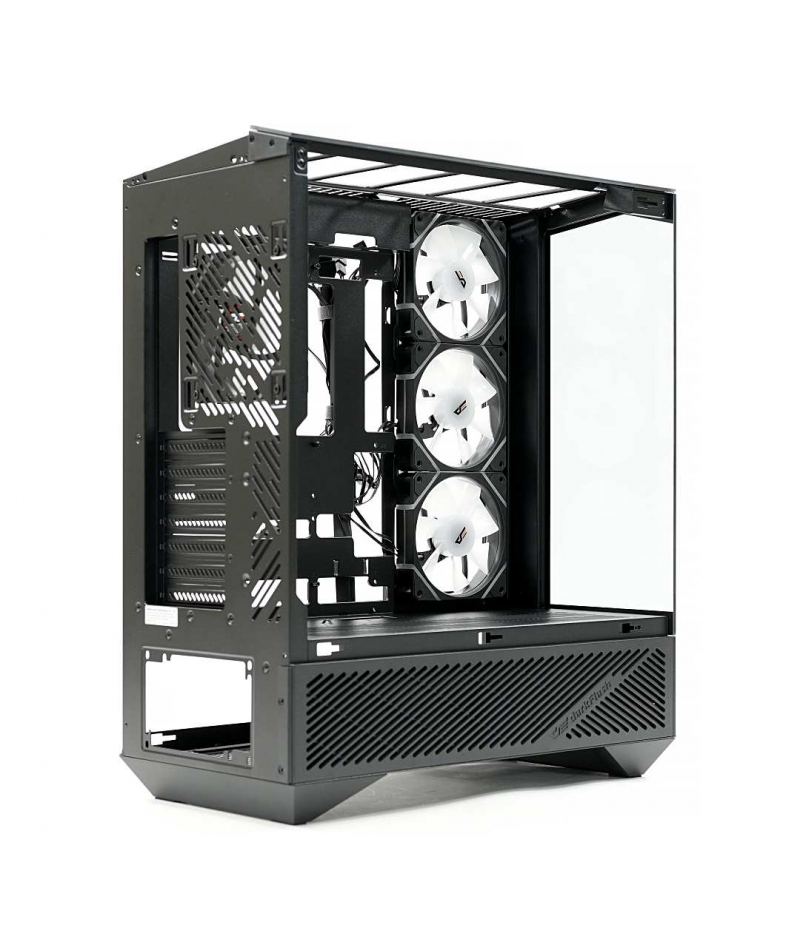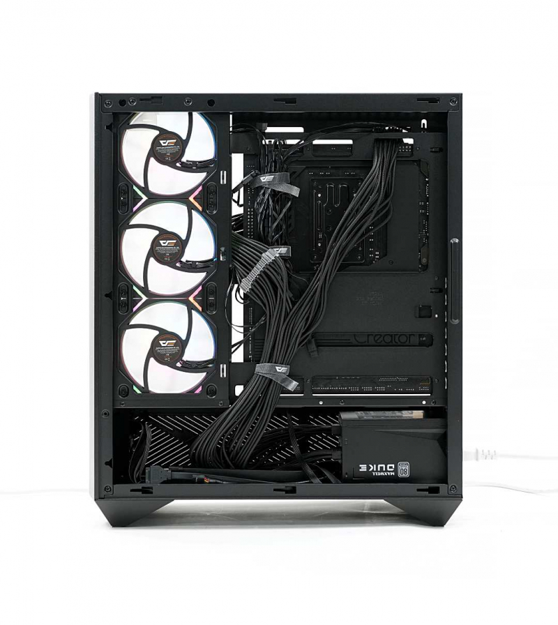 DY460은 결코 작은 케이스가 아니다. FULL ATX 메인보드를 여유 있게 장착할 수 있으며, 7슬롯 확장 구조로 그래픽카드의 세로 장착까지 지원한다. 260mm 길이의 고출력 파워 서플라이, 410mm급 그래픽카드, 그리고 최대 175mm 높이의 공랭 쿨러까지 수용 가능한 내부 공간을 갖췄다. 약간 커진 외형 덕분에 어떤 하드웨어 조합에서도 호환 문제를 걱정할 필요가 없으며, 조립 과정 또한 쾌적하다. 360mm 라디에이터 장착 지원은 이제 설명이 필요 없는 기본 덕목으로 자리 잡았다.