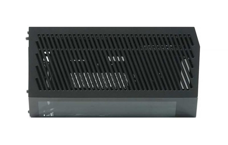 좌측의 유리 패널과 우측의 철제 패널은 마치 전통 건축의 지붕선처럼 일정한 각도로 맞닿아 있다. 동일한 각도의 사선이 케이스 전반을 관통하며 하나의 디자인 오브제로 기능한다. 내부 패널의 에어홀도 같은 각도로 가공해 통일감을 극대화했다. 사선이라는 하나의 조형 언어를 제품 전반에 일관되게 녹여낸 셈이다.