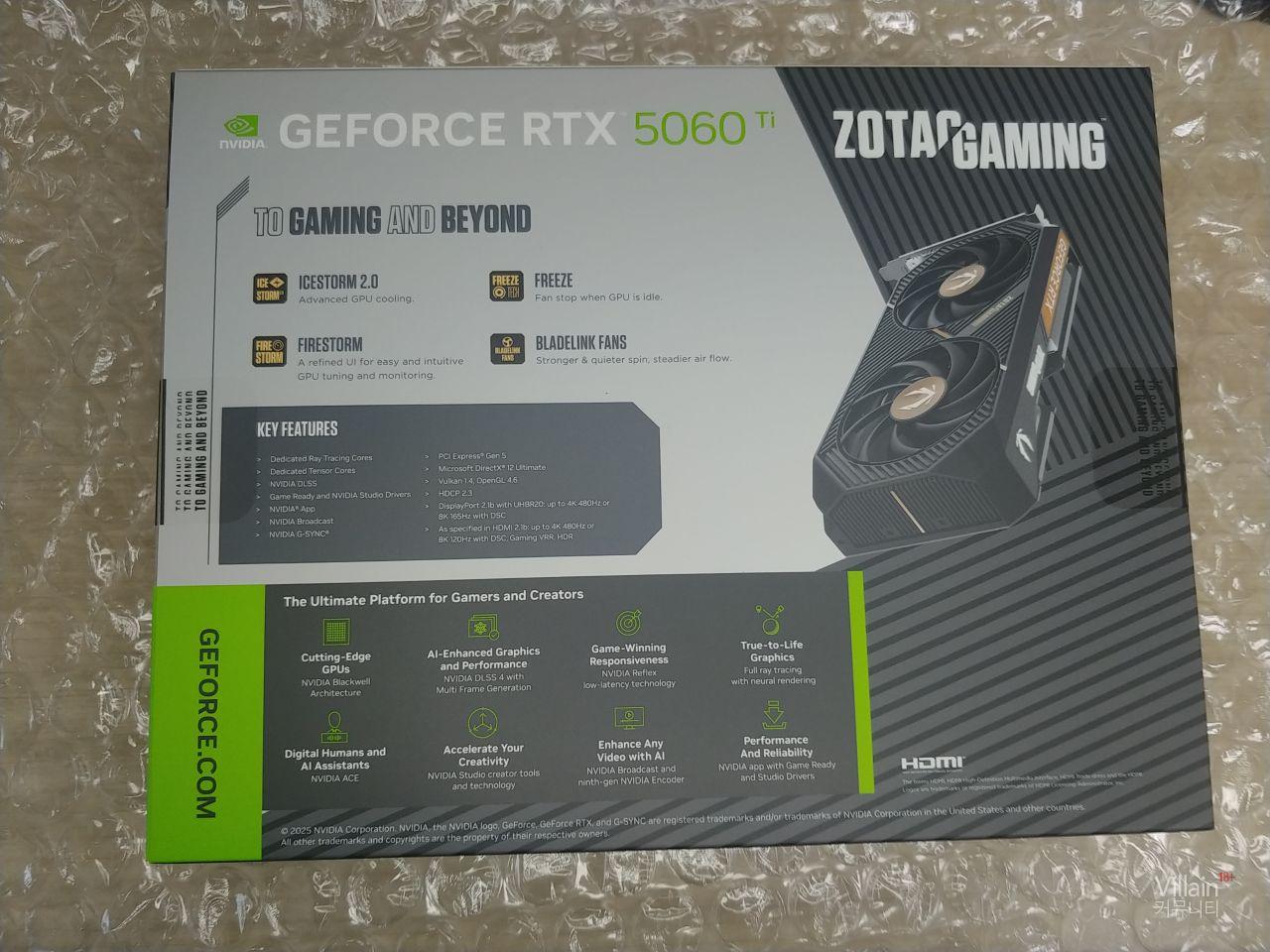 어제  🌕조텍×빌런 추석 이벤트🦹 상품 RTX 5060 Ti 8GB AMP Edition 잘 수령 하였습니다.