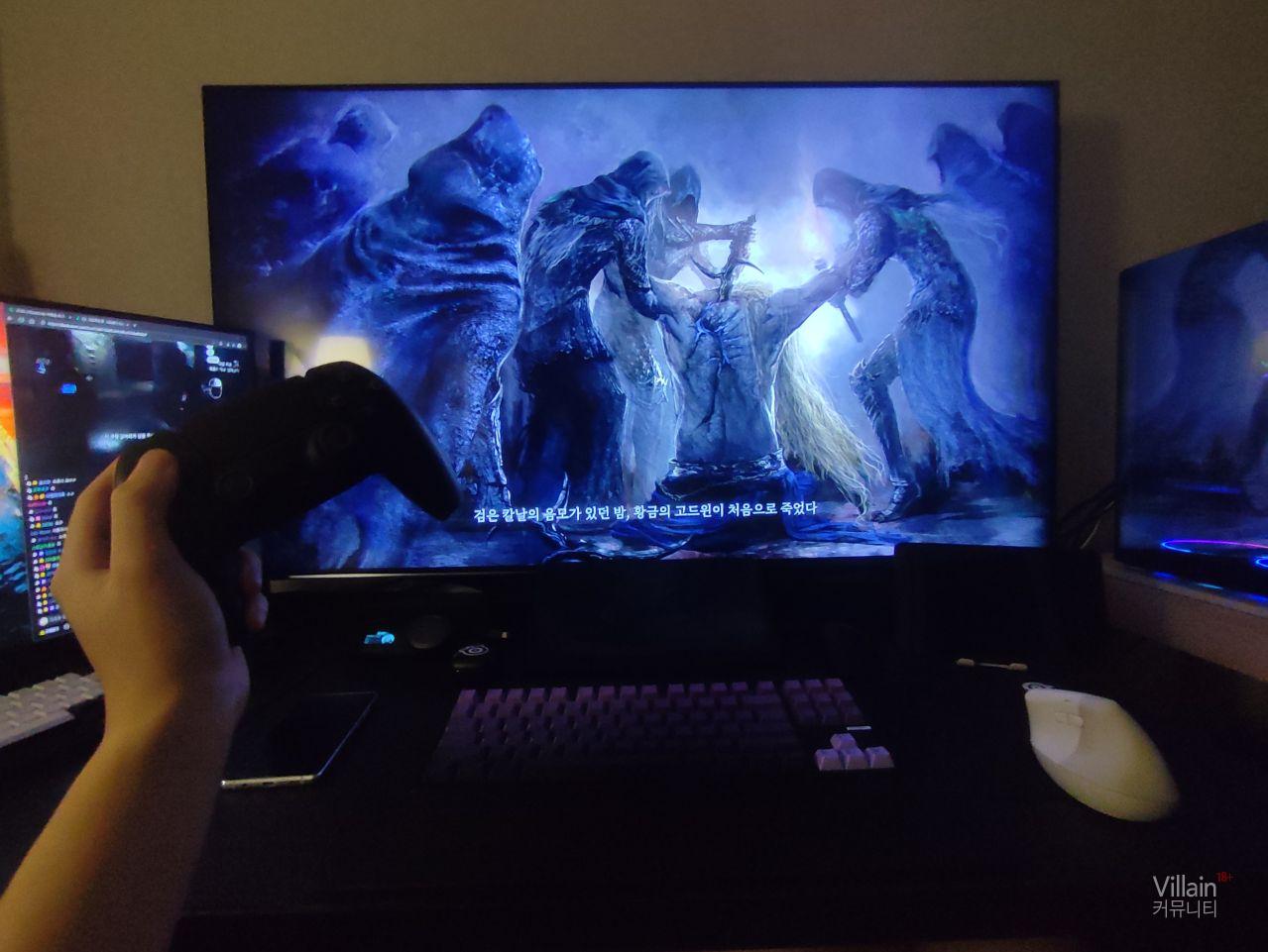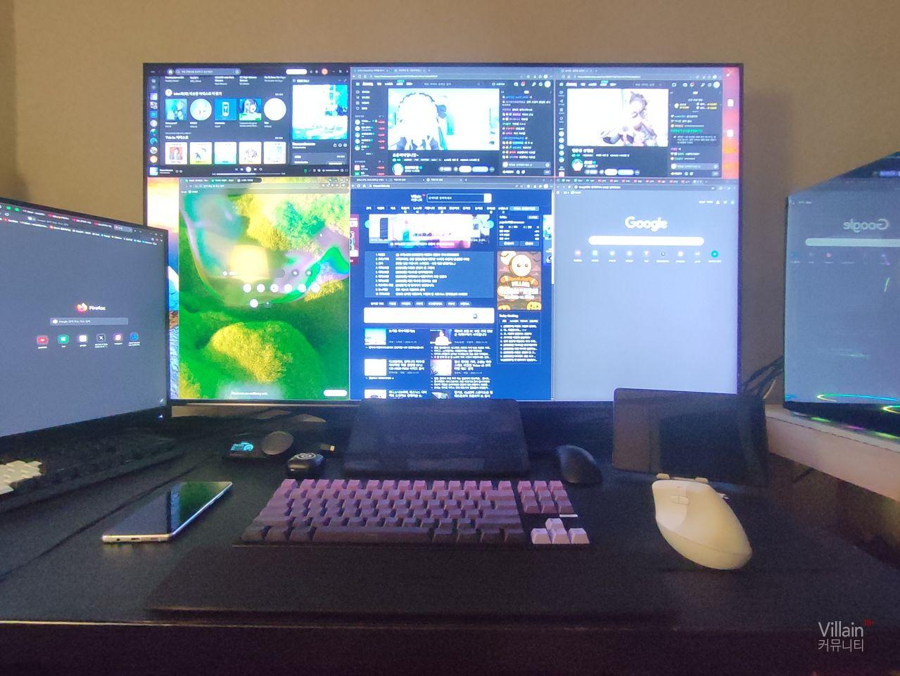 원래는 피벗으로 쓰다가 fps 게임 할 때 저 모니터를 끌어와서 써야해서 저렇게 가로로 뒀습니다