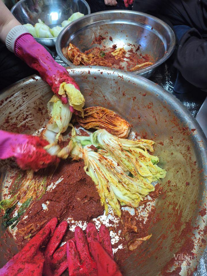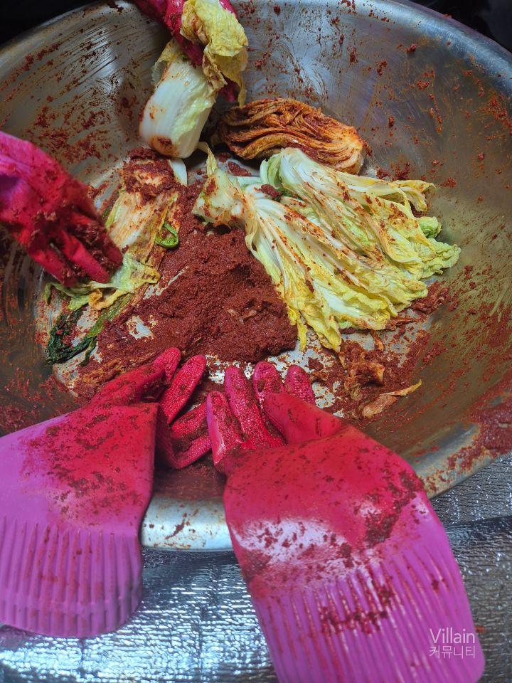 온 식구가 삥 둘러 앉아 김치 100포기 정도를 했네요. ㅎ