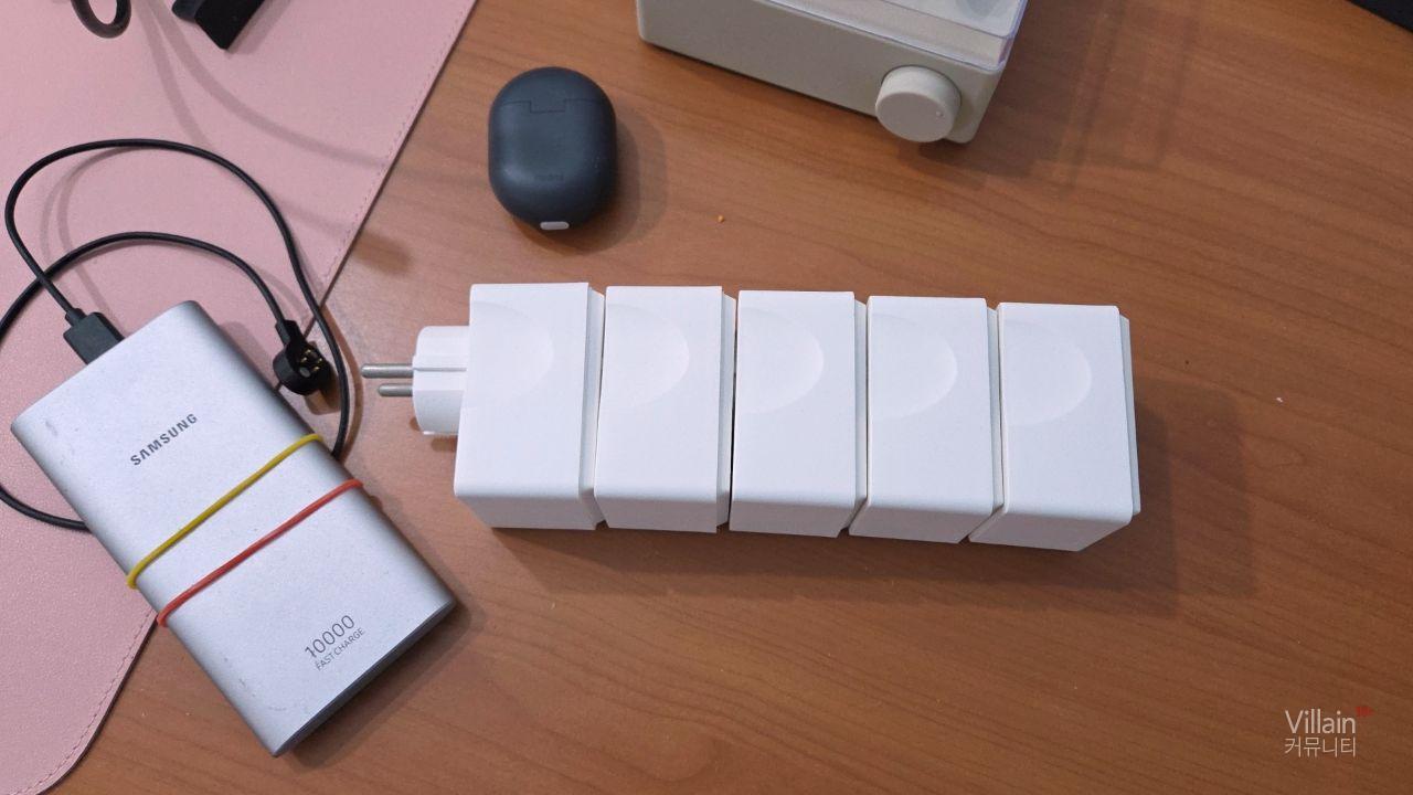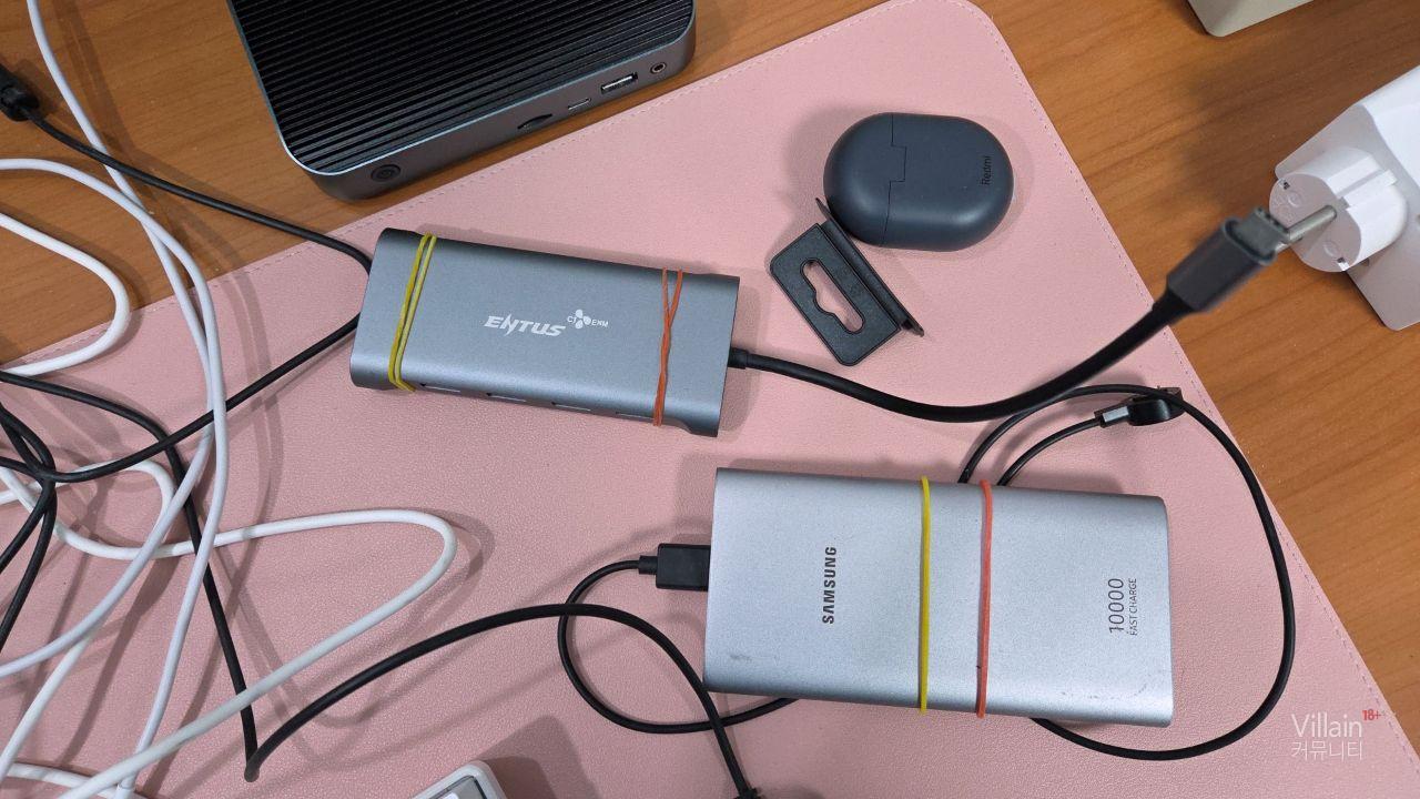 USB 허브와 충전기에 고무줄을 해놓은 까닭은 책상과 마우스 패드를 긁기 때문에