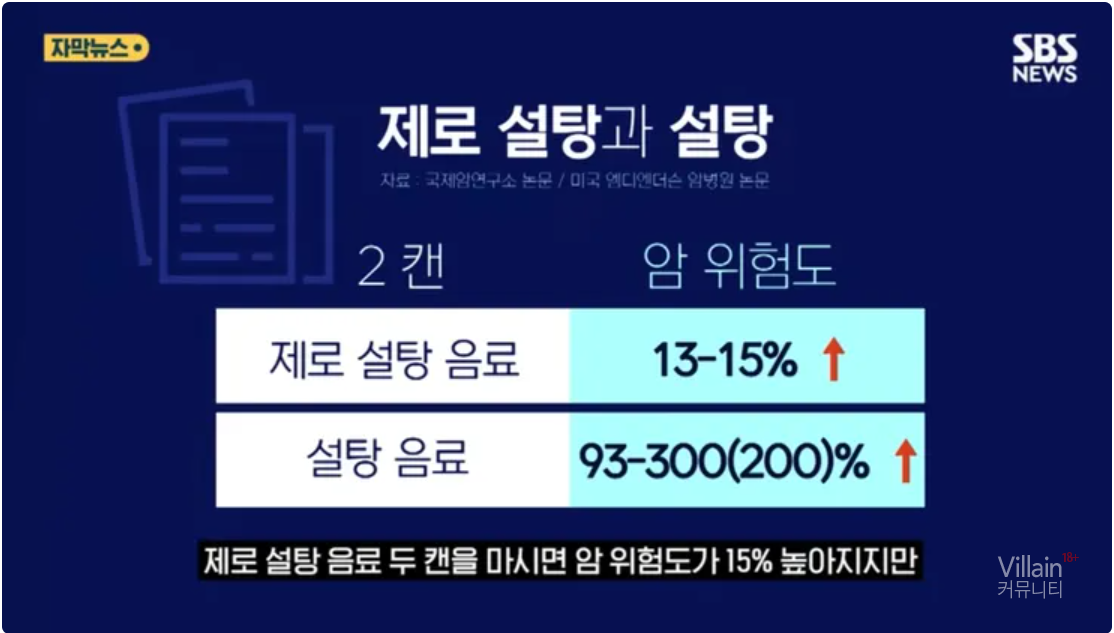 그런데 설탕 음료 하루 2캔 먹으면, 암 위험도가 200% 늘어난다고 합니다.