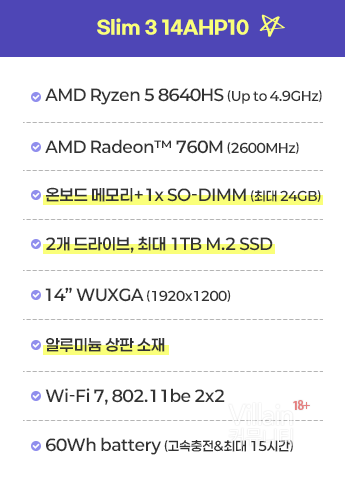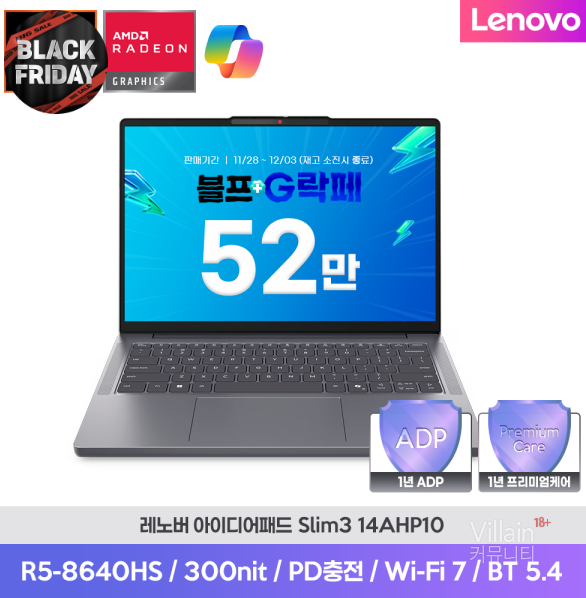 [G마켓]레노버 아이디어패드 Slim3 14인치 (AMD 8640HS/8G/256GB) 529,170원