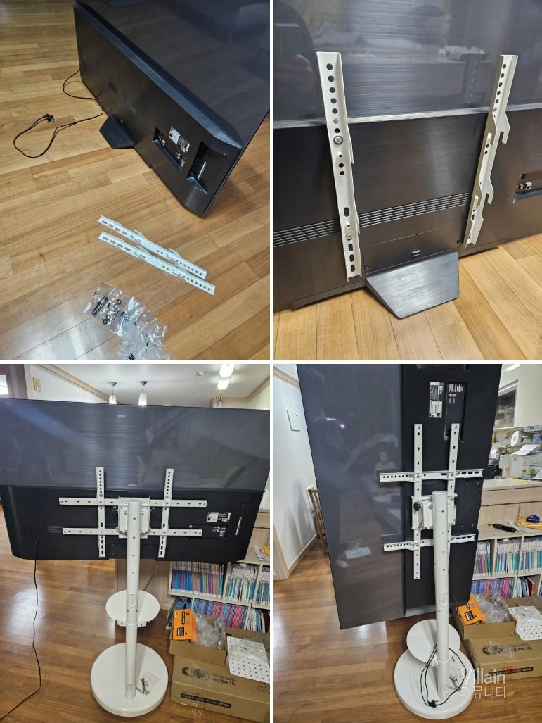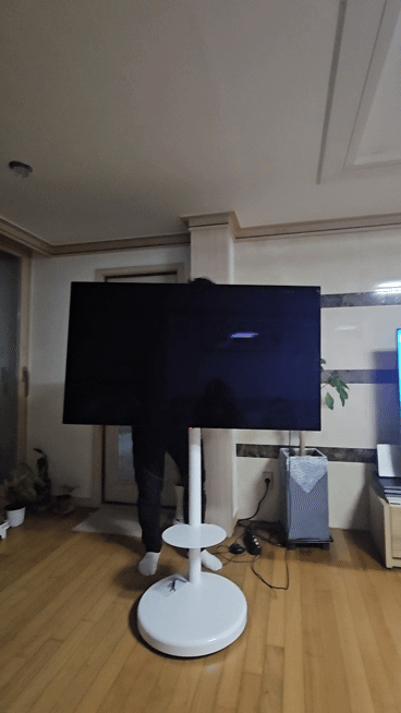 거치대에 고정이 확실해서인지 무거운 TV 피벗도 쉽게 가능합니다.