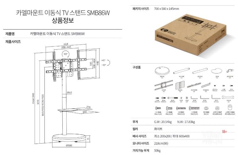 오늘은 카멜마운트 초대형 이동식TV거치대 SMB86W에 대해 알아보고자 합니다.