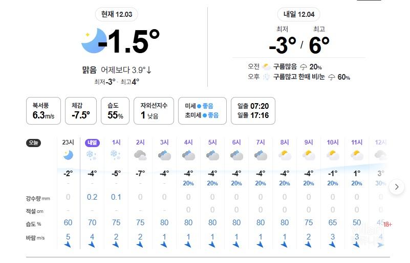 저녁부터 영하 -2도 가 지속되는거 보면…