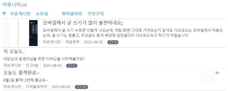 커뮤니티 빌런 18+ ( Villain ) Beta 2.0
