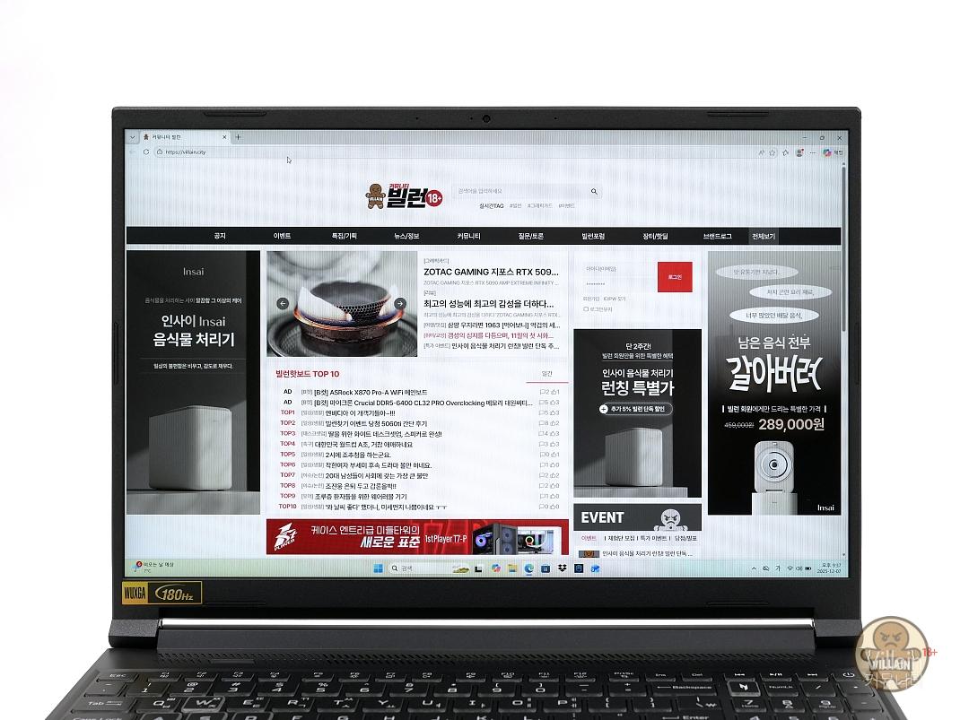 디스플레이 : 16인치 16:10 / WUXGA(1920×1200) / IPS / 180Hz / sRGB 100% · 300nit