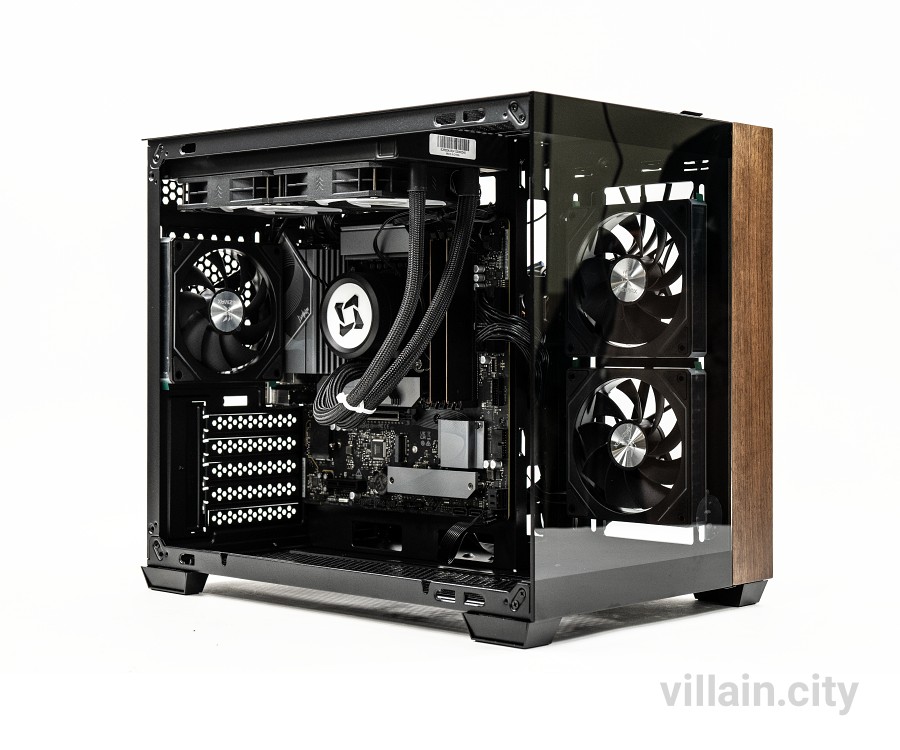 전체적으로는 미니타워 형태의 직사각형을 취하고 있으며 요즘 트렌드인 어항형 구조를 채택했다. 전면부와 좌측면 강화유리 패널이 만드는 풀 파노라믹 디스플레이는 탁트이는 개방감을 가져다 준다. 투명하게 들여다보이는 내부에서 화려한 LED 조명 효과와 함께 내부 빌드를 감상할 수 있다.