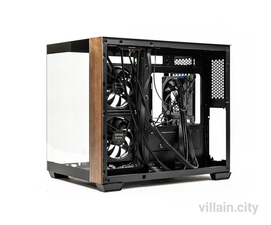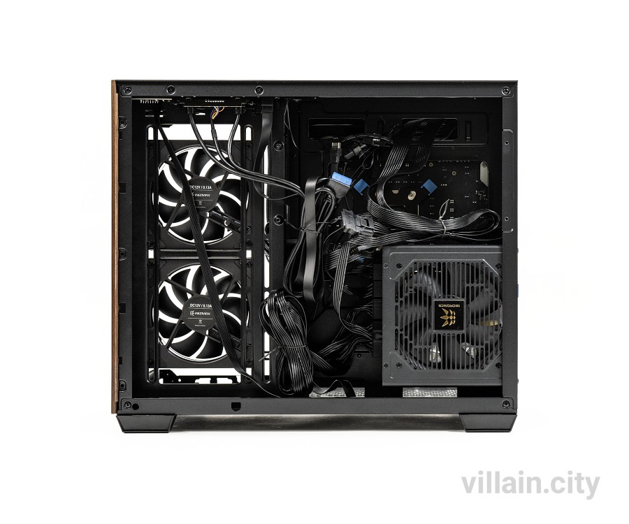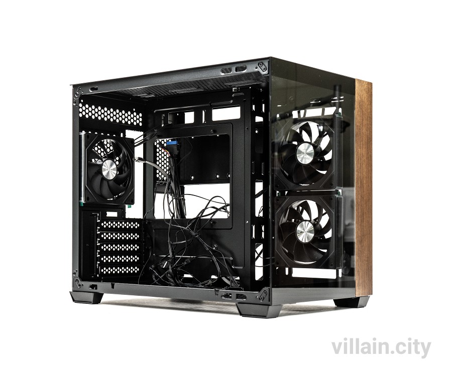 위즈맥스 우드리안 프로 케이스에 채택된 듀얼챔버 시스템은 공간활용과 냉각성능 양쪽을 다 잡았다. 듀얼챔버 시스템은 가장 열이 많이 나고 크기가 큰 파워 서플라이를 분리시키는 구조다. 시야를 막는 파워와 케이블 등을 다른 쪽으로 몰아넣고 측면에 냉각팬을 집중 배치했다.