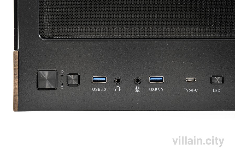 마지막으로 편의성을 높여주는 케이스 전면 입출력(I/O) 패널을 살펴보자. 케이스 상단 우측에 위치한 입출력 패널은 앞쪽부터 전원버튼, 리셋버튼, USB 3.2 Gen1 1개, 오디오 입력 단자 1개, 오디오 출력 단자 1개, USB 3.2 Gen1 1개, USB 3.2 Gen2x2 타입C 1개, 상태 LED 1개가 탑재됐다. 특히 이 가운데 USB 3.2 Gen2x2 타입C는 최대 20Gbps라는 높은 전송속도를 지원하므로 외부 기기와의 빠른 입출력을 원하는 사용자에게 유용하다.