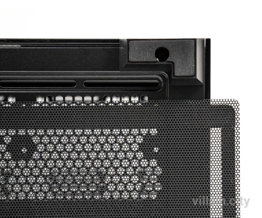 케이스 패널 부분에 외부 먼지와 이물질 유입을 막고 쇼트를 방지하는 마그네틱 먼지 필터가 붙어있다. 이 먼지 필터에는 쉽게 들어올려 분리할 수 있는 스트랩이 붙어있는 좋은 디자인 설계가 채용됐다.