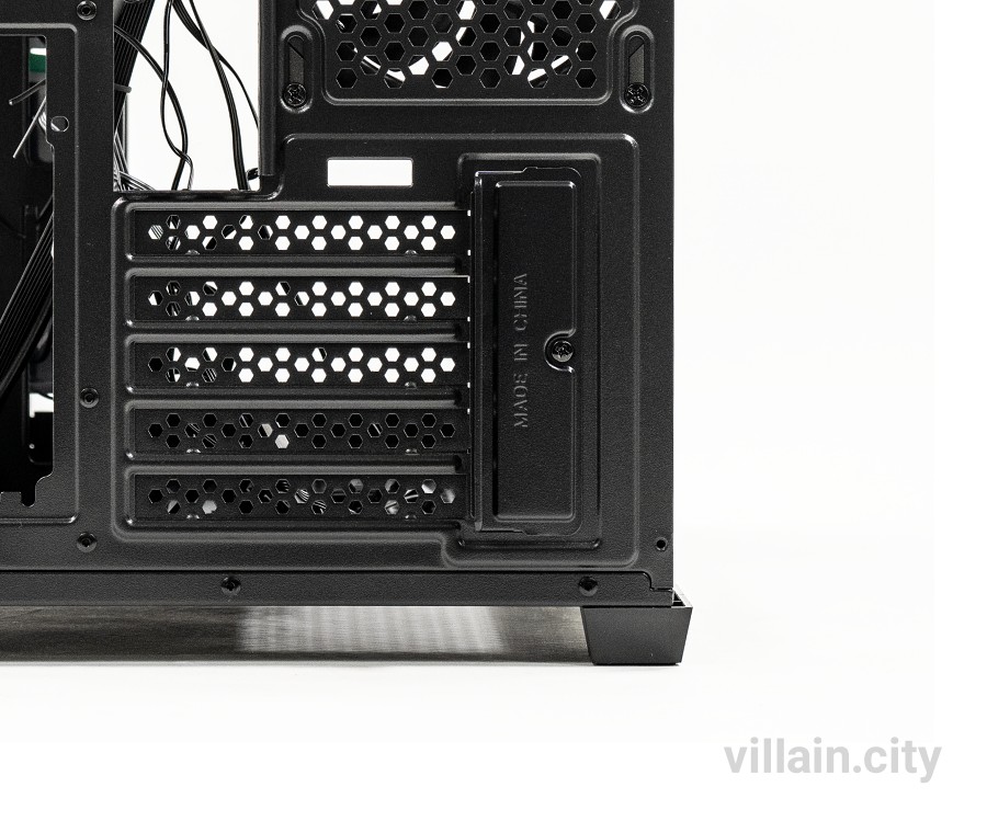후면부에는 PCI슬롯 5개가 달려있다. 미니타워 케이스라는 점을 고려하면 많은 숫자로 시스템 확장성이 높다. 넓은 하부 공간을 통해 수랭쿨러와 시스템 팬 같은 추가 확장공간을 제공한다.