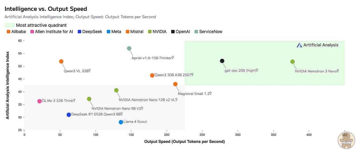독립 AI 벤치마킹 기관인 Artificial Analysis는 Nemotron 3 나노를 동급 모델 가운데 가장 개방적이면서 효율적인 모델로 평가했으며, 정확도 역시 상위권으로 분류했다.