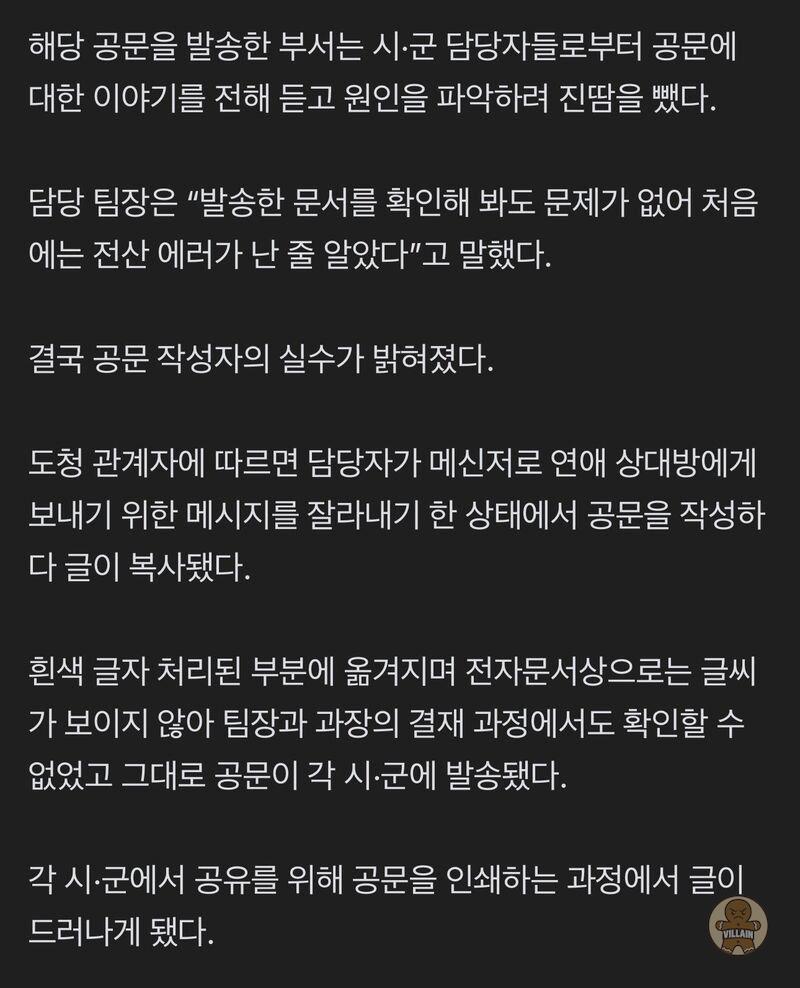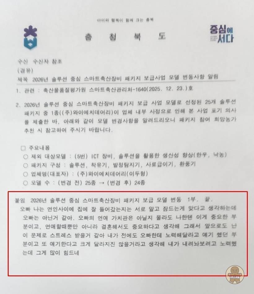 충북 공무원 공문 - 오빠의 연예 가치관 붙임.