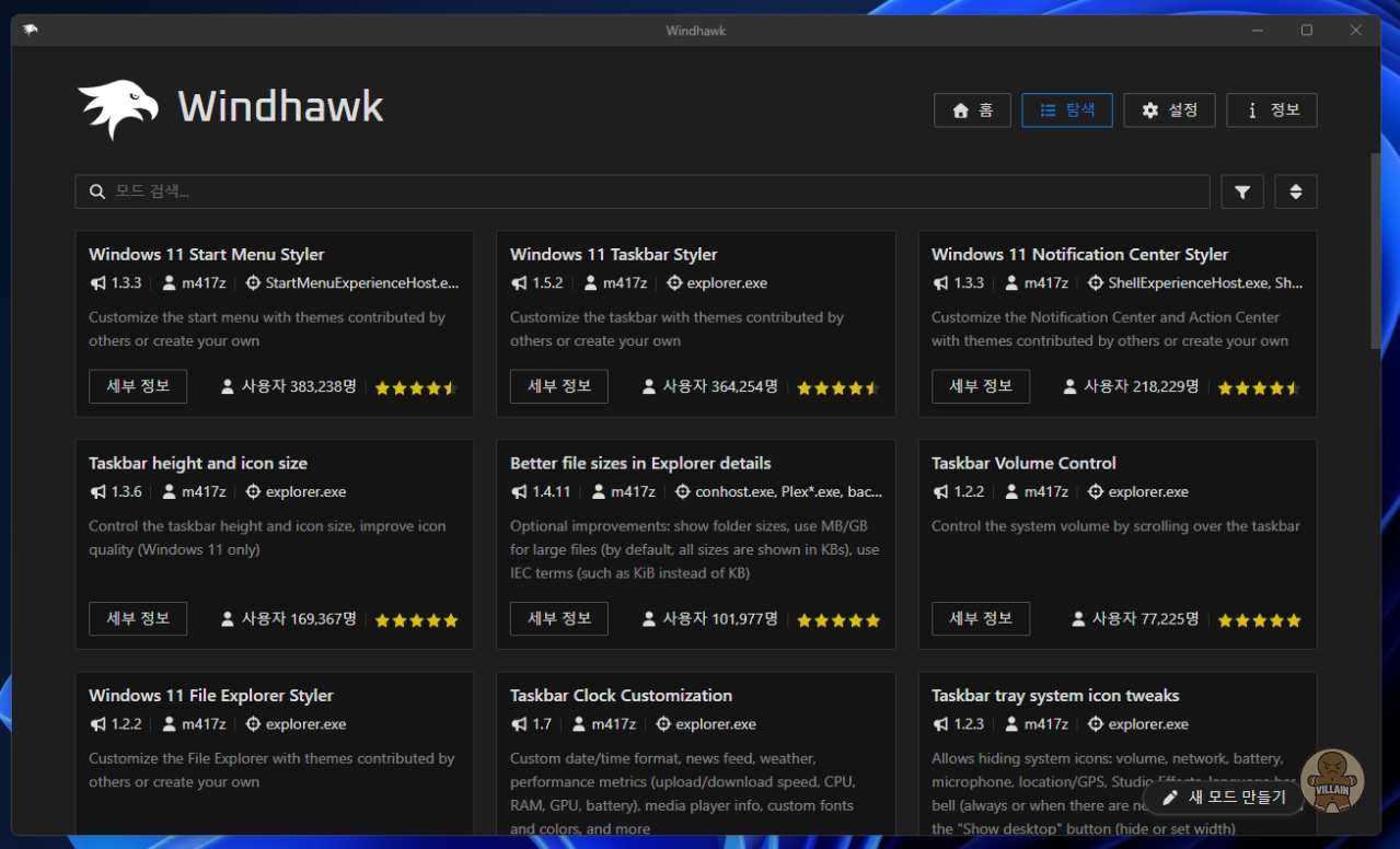 이 외에도 다양한 윈도우 Tweak 모드들이 있으니 하나하나 설치해보시면서