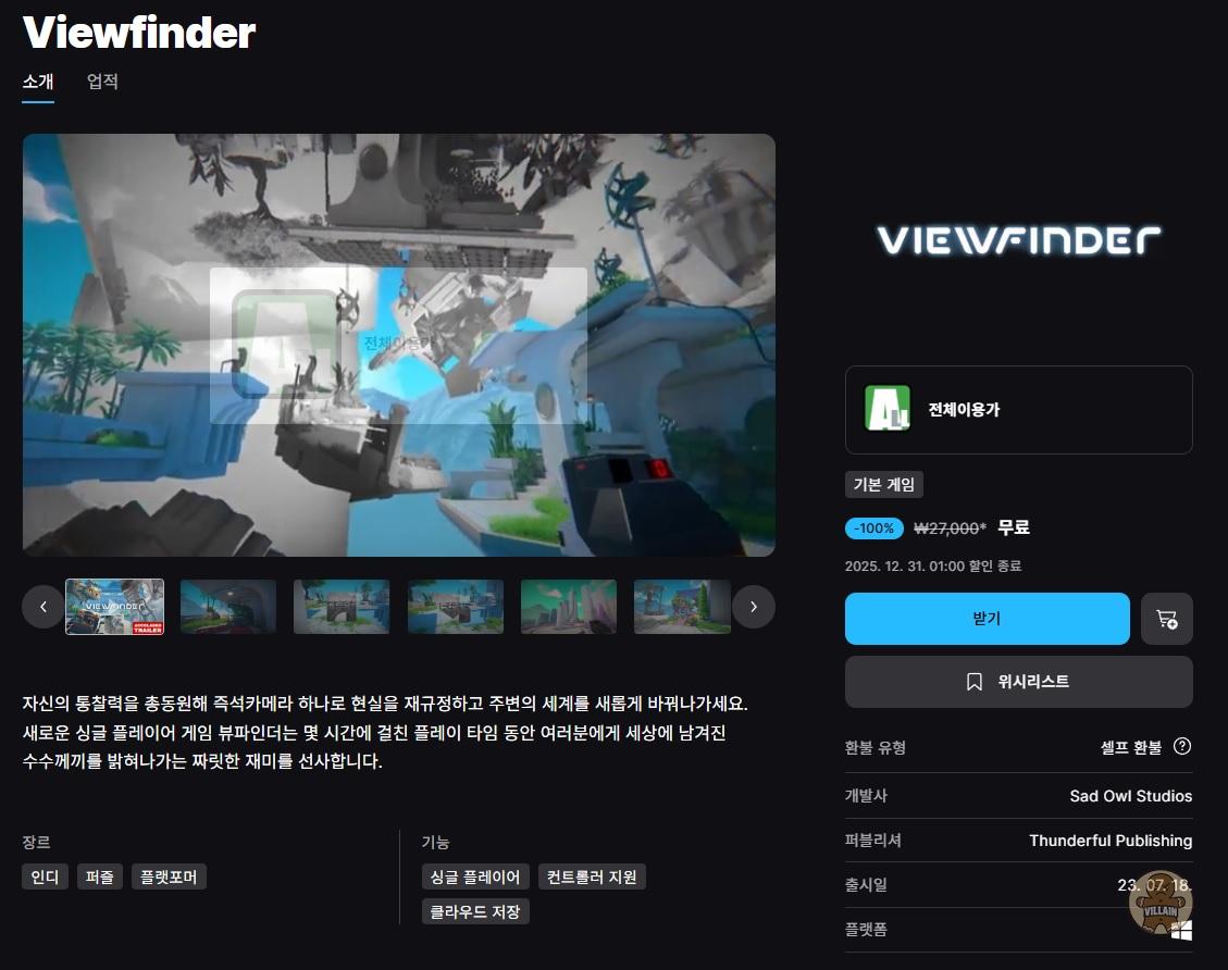 [에픽게임즈] 무료게임 - Viewfinder