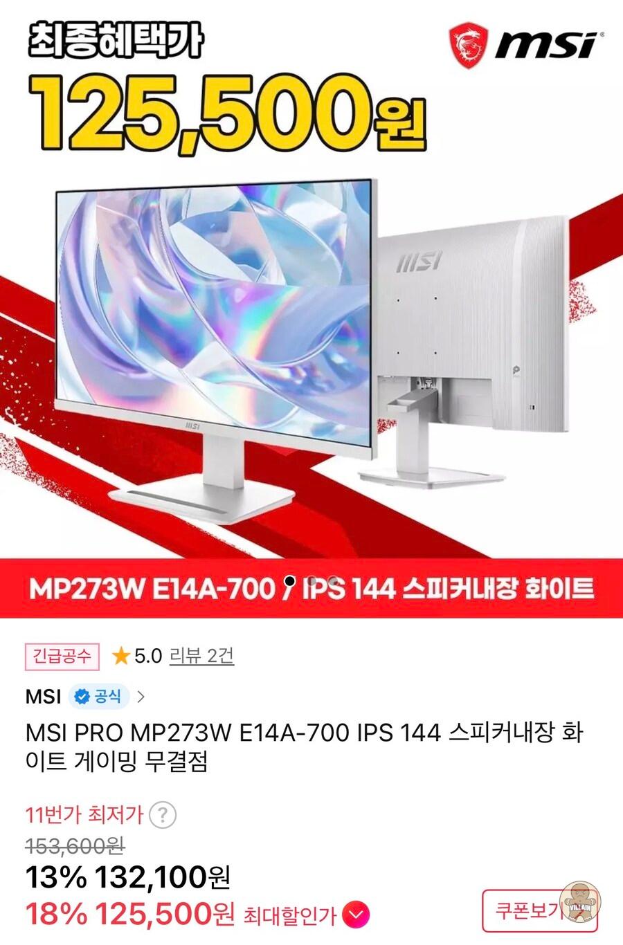 [11st] MSI 화이트 게이밍 무결점 모니터(125,500원)