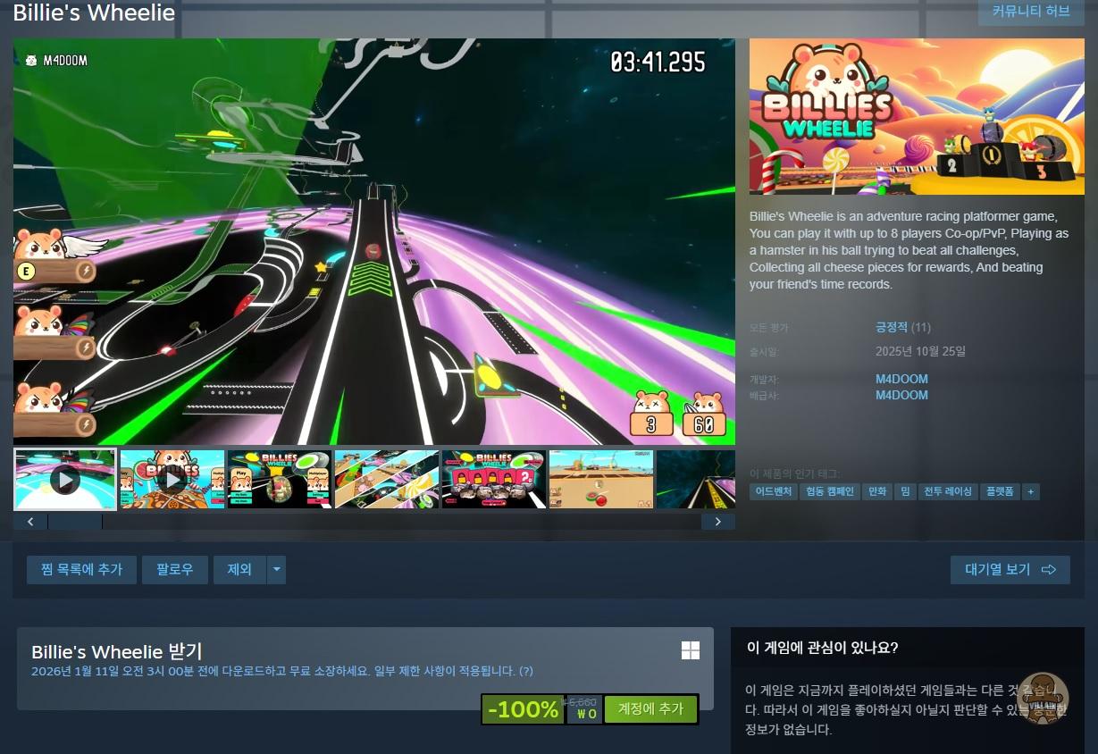 [스팀] 무료게임 - Billie's Wheelie