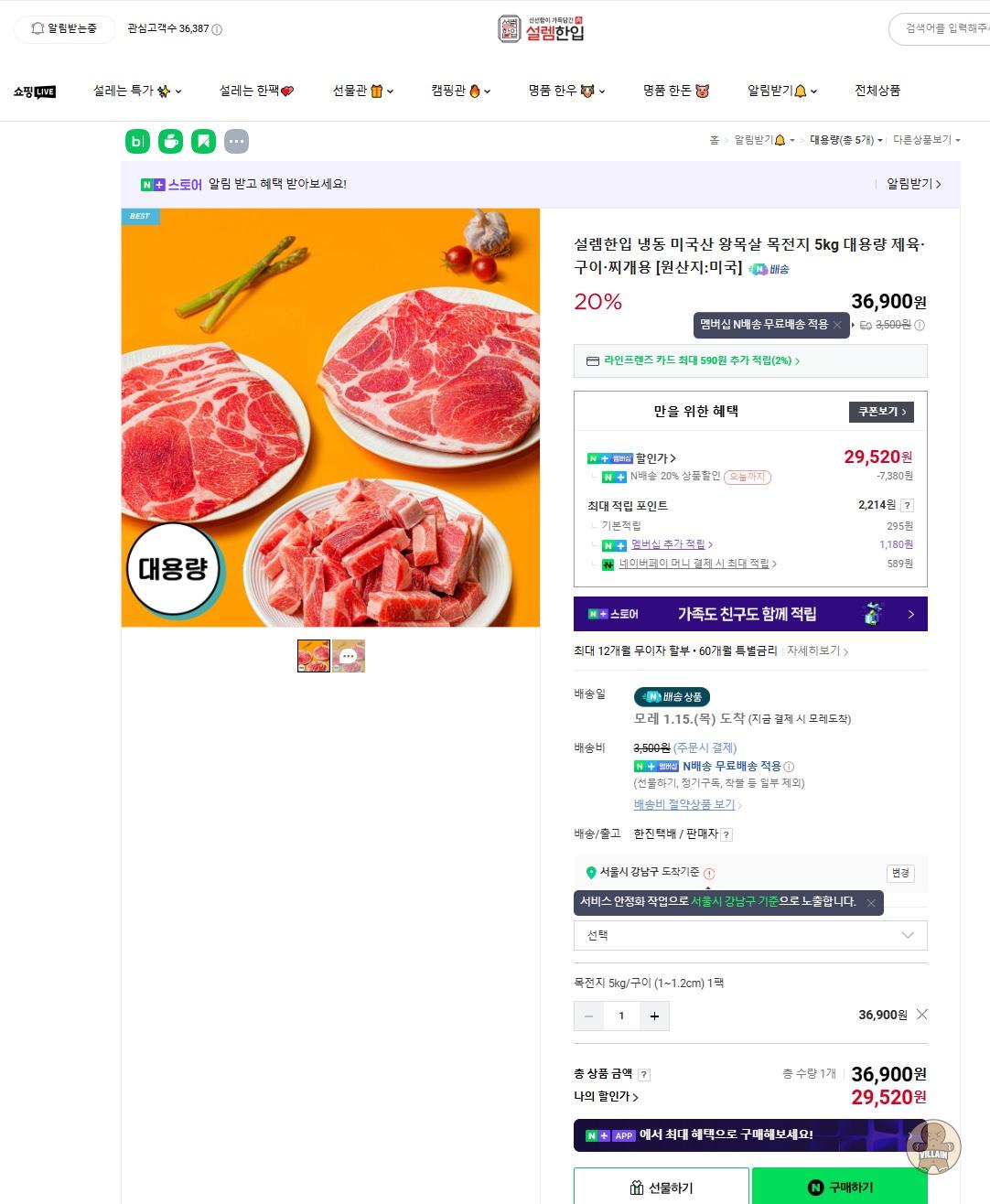 [네이버 스토어] 설렘한입 냉동 미국산 왕목살 목전지 5kg 대용량 제육·구이·찌개용 [원산지:미국] 29,520원 네이버 멤버십 가격 무료배송