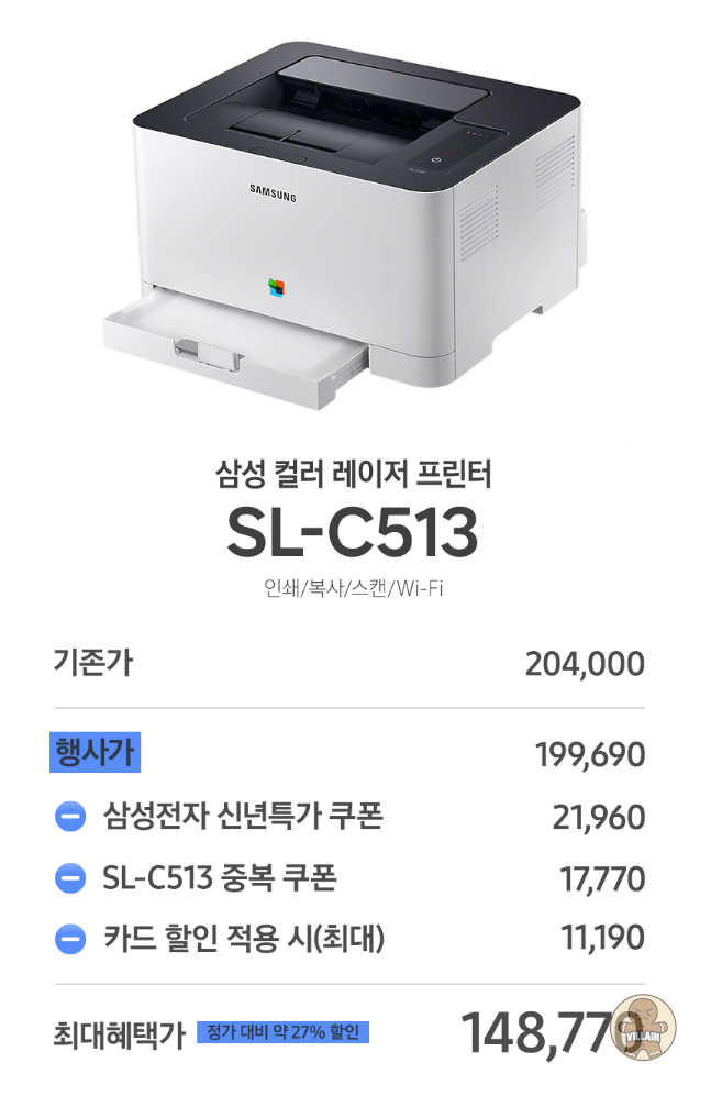 삼성전자 SL-C513 컬러 레이저 프린터 148,770원