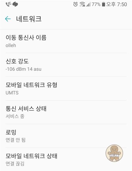 설정 들어가서 보니 0칸이 되었을때 사업자 올레도 안뜸;;