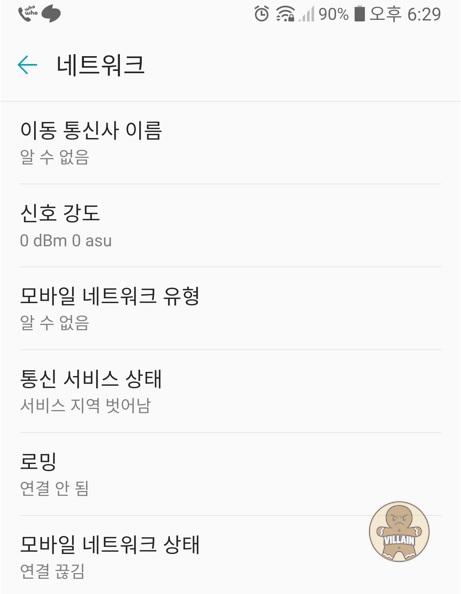 갑자기 핸드폰을 보는데 안테나가 하나도 안뜨고 있네요.