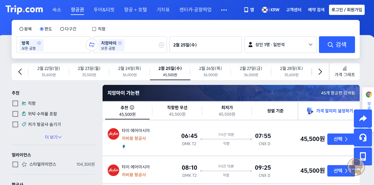 기본적으로 태국은 수도인 방콕으로 가는 항공편이 가장 많고 저렴하다. 치앙마이까지 가는 직항편은 숫자도 적고 방콕보다는 비싼 편이다. 하지만 잘 찾아보면 저가 항공사 특가 이벤트 등을 통해 방콕행과 거의 비슷한 가격으로 얻는 기회도 찾을 수 있으니 이럴 때 예매하자. 직항편이 너무 비싸다고 생각하면 방콕을 거쳐서 치앙마이로 갈 수도 있다. 시간대 별로 다르긴 하지만 방콕 - 치앙마이 항공권은 보통 5~8만원 정도로 구입할 수 있다.