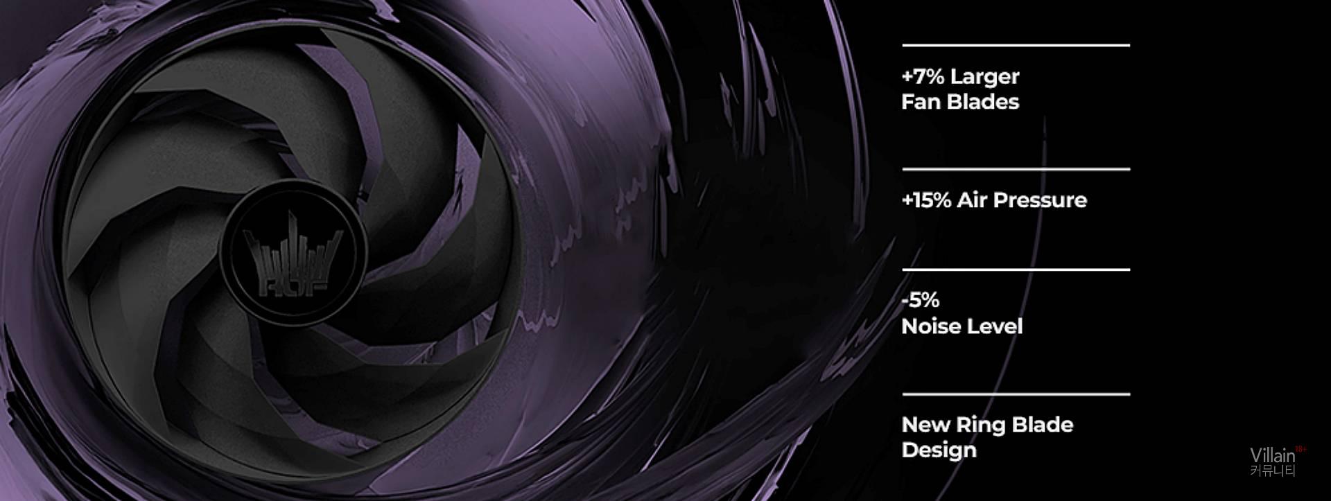 팬 블레이드는 공기역학 시뮬레이션 기반으로 설계된 구조로 공기압을 기존 대비 약 15% 향상시켰으며, 소음 수준은 약 5% 감소했다. 링 블레이드 설계로 진동 억제와 풍량 유지를 동시에 고려했다.
