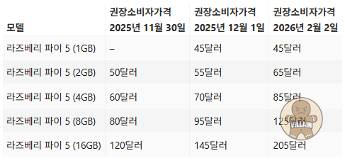RAM 부족 사태로 라즈베리파이5 가격 인상