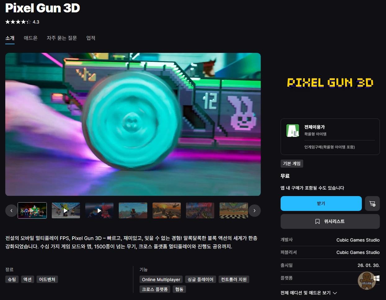 [에픽게임즈] 무료게임 - Pixel Gun 3D(독성 레트로 세트)