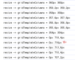 콘솔을 통해 보면 앞 게시글의 가로 사이즈 354px이하로 내려가자마자 뒷 게시글로 크기가 이동되는 것이 보이지요?