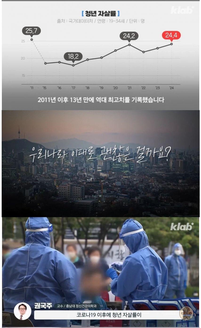 대한민국 청년자살률 1위