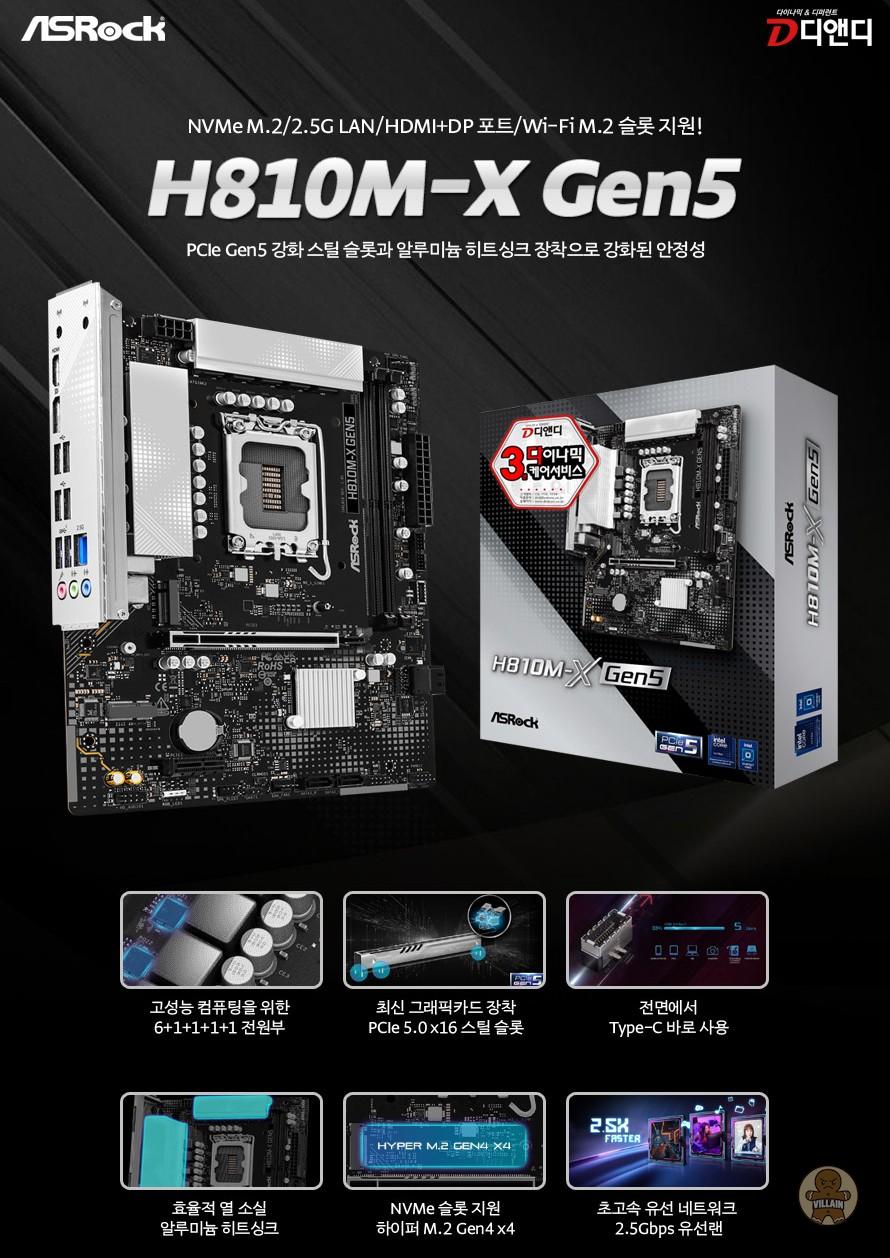 디앤디컴, 실속형 플랫폼 '애즈락 H810M-X Gen5' 출시