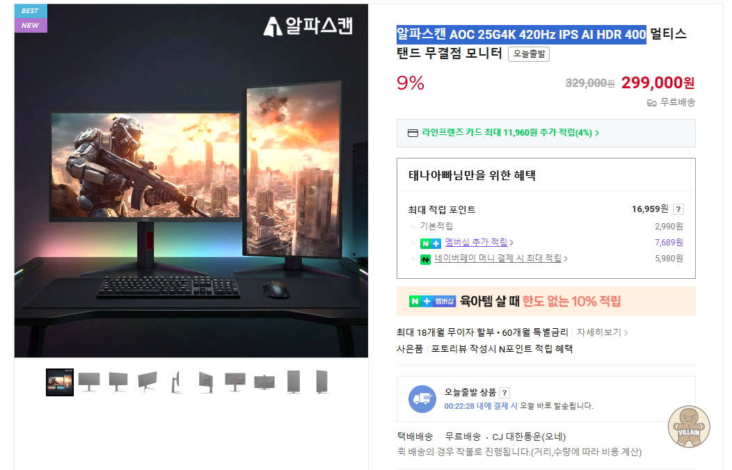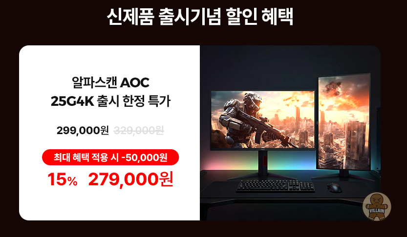 알파스캔 AOC 25G4K 420Hz IPS AI HDR 400