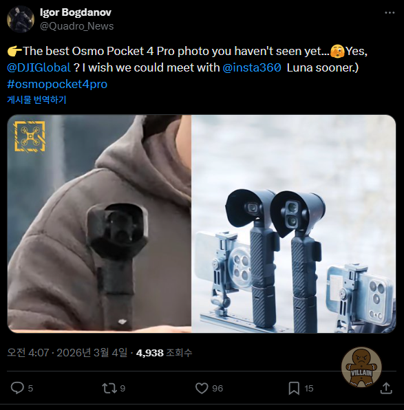 DJI Osmo Pocket 4 Pro 듀얼 카메라 탑재