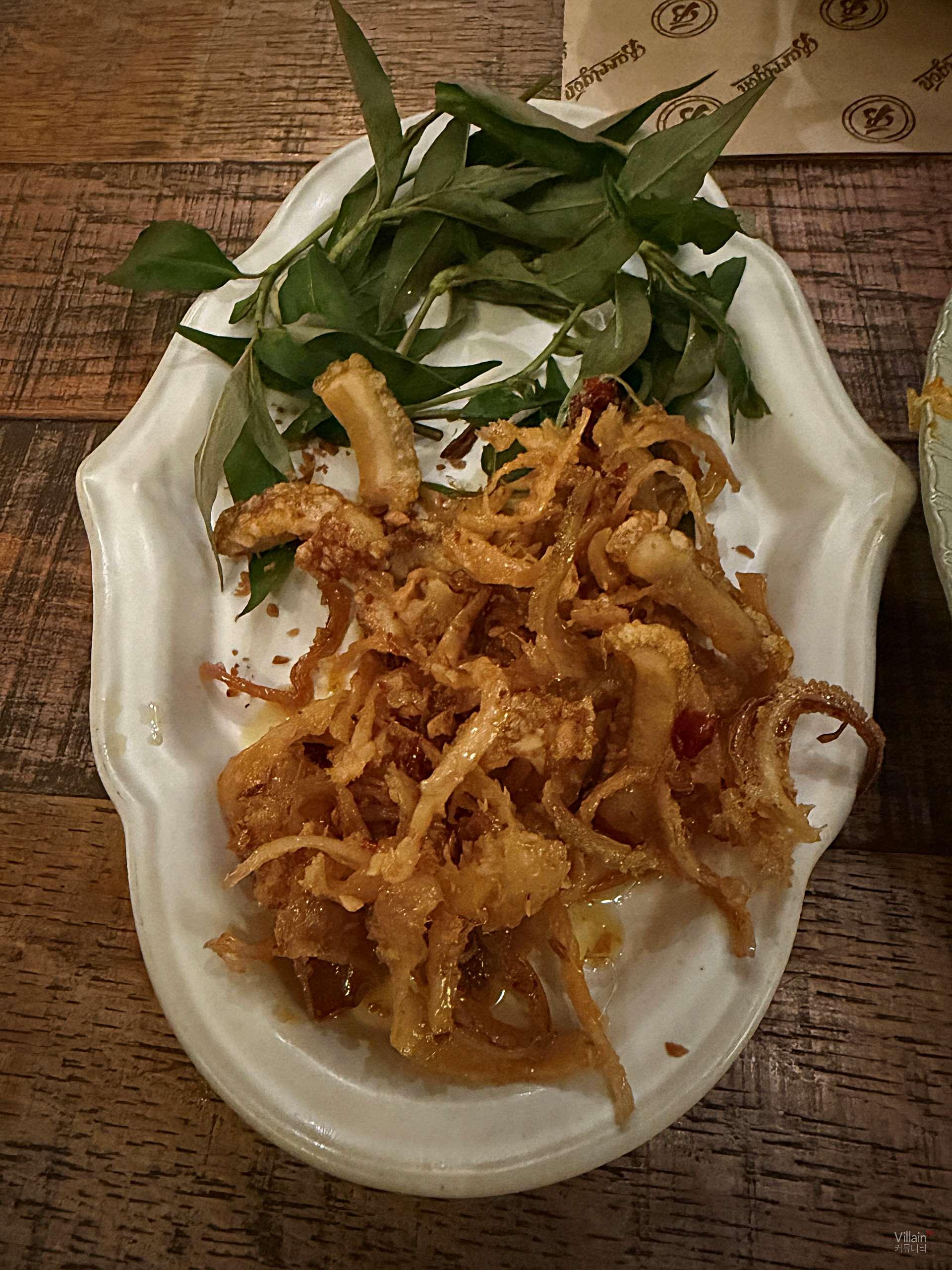 마늘 피시소스에 버무린 마른 오징어 튀김. 맥주 안주로 딱.