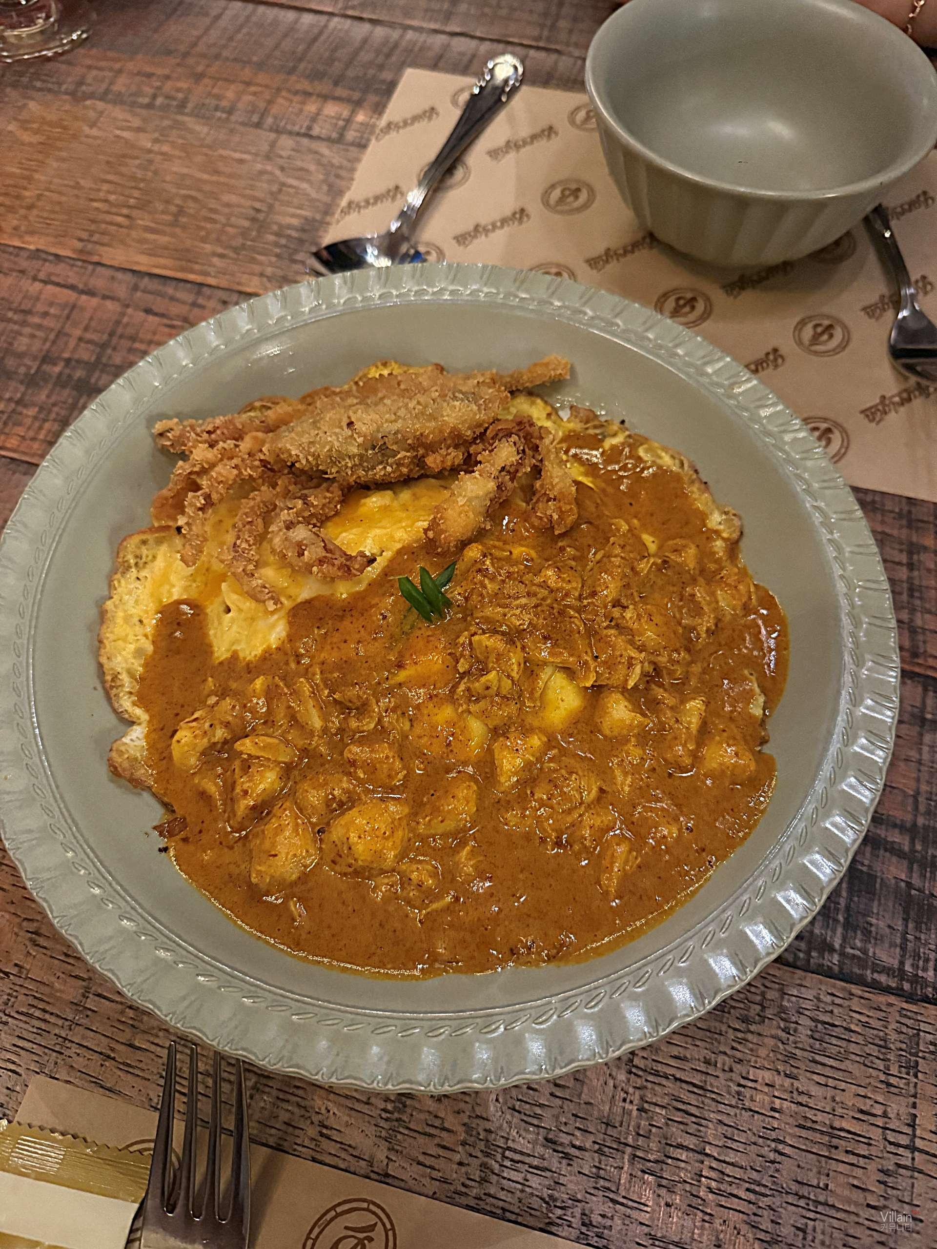 게살 듬뿍 올라간 커리소스 오믈렛 느낌. 밥과 함께 먹으면 완벽. 한국인 입맛에도 무리 없음.