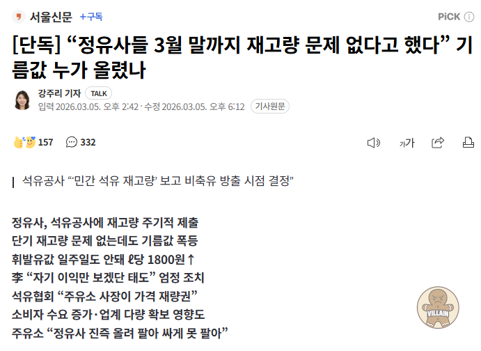 기름값 폭등, 정유사 3월말까지 재고량 문제없다