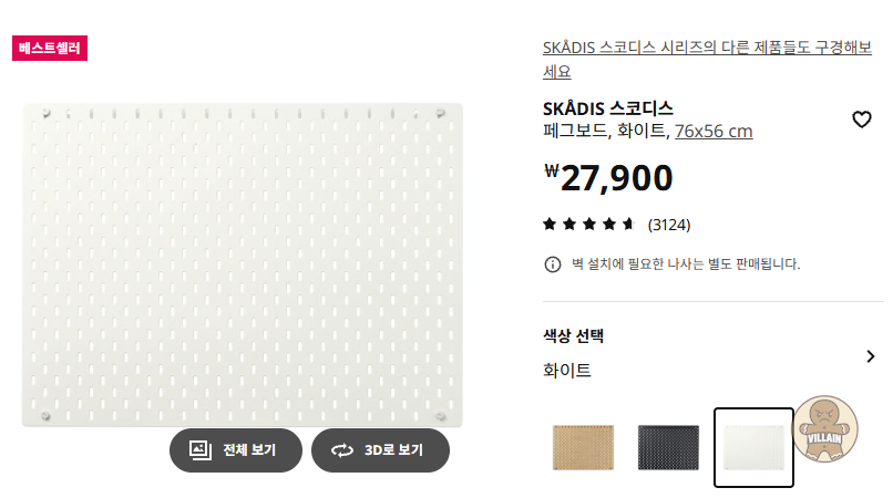 이케이 페그보드 76x56cm https://www.ikea.com/kr/ko/p/skadis-pegboard-white-90321619/